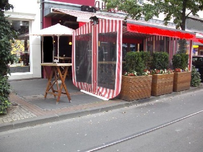 Sichtachse aus der Perspektive von Passanten, die diese Rauchschleuse im öffentlichen Strassenraum passieren müssen.