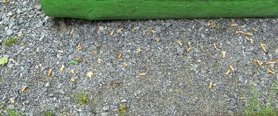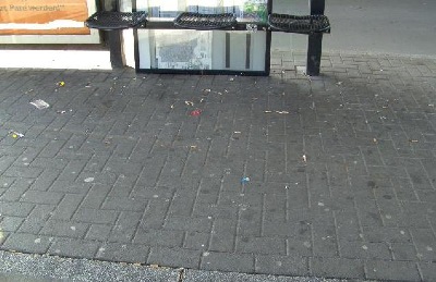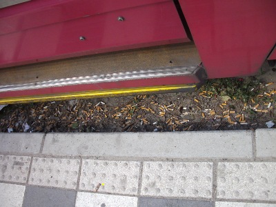 Trotzdem landen Kippen auf dem Boden und prägt sich nicht nur im witterungsgeschützten Bereich des Wartehäuschen durch Asche und Tabakreste ein stinkender Belag aus.