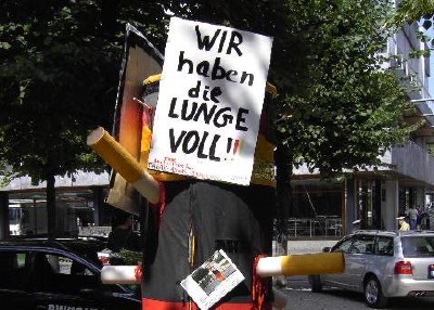 Da war der Stratege einer Tabakfirma, der am Rande der 1. Pressekonferenz des "Deutschen Zigarettenverbands"an das Mahnmal für die Opfer des Nikotin-Lobbyismus herantrat und auf unsere Frage: